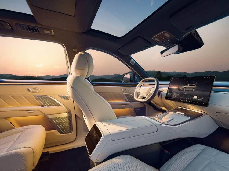 L90內(nèi)飾采用“全艙環(huán)抱式”座艙設(shè)計(jì)理念,整體屬于極簡(jiǎn)的風(fēng)格,簡(jiǎn)單到甚至沒有傳統(tǒng)的儀表盤,最惹眼的就是這個(gè)大尺寸的懸浮屏。中控臺(tái)大都用一些直線條是其設(shè)計(jì)特點(diǎn),帶來一種干練利索的視覺效果,其所配備的氛圍燈通過中控臺(tái)、門板實(shí)現(xiàn)了貫穿的效果。