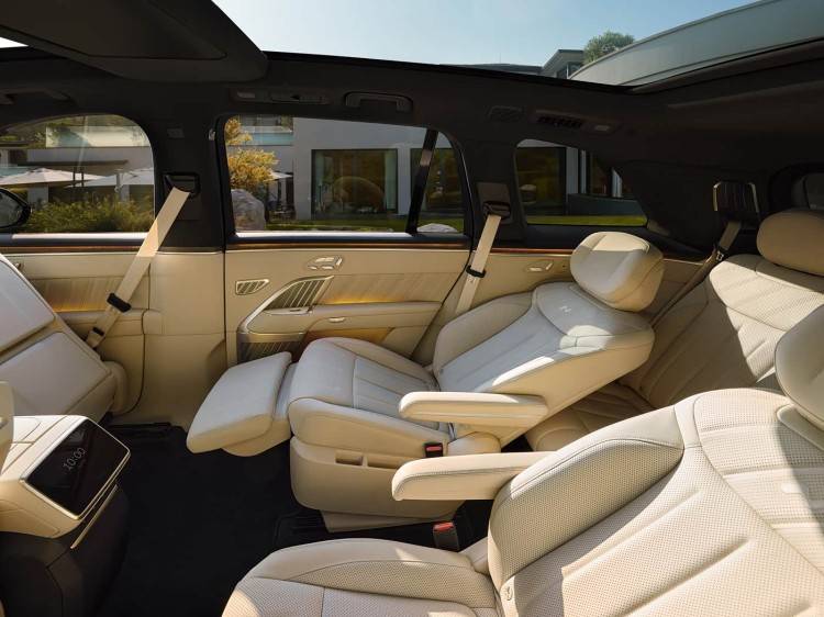 其一二排座椅可以聯(lián)動(dòng),形成“懶人沙發(fā)”。從細(xì)節(jié)來看,其座椅調(diào)節(jié)按鍵被放置在門板上,除了一二排座椅支持大量的電動(dòng)調(diào)節(jié)之外,甚至三排座椅也可以電動(dòng)控制前后以及靠背的角度。此外,新車配備了前后雙天窗,后天窗擁有較大的面積。