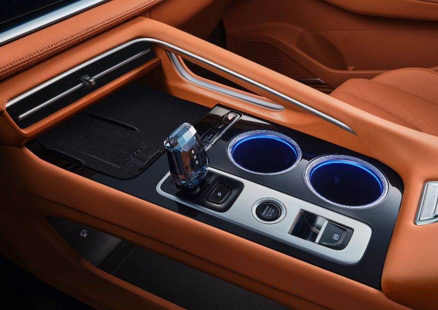 中控區(qū)域,拱橋承韻?扶手臺(tái)中央控制區(qū)為“拱橋半包圍”結(jié)構(gòu),保留常用功能實(shí)體按鍵,操作高效;3D鐳雕?水晶擋把工藝精致,握持體驗(yàn)佳;窗影疊映?座椅采用“菱扇鏤空”工藝,乘坐干爽。高山流水?音響氛圍燈擁有同級(jí)最多12個(gè)發(fā)光區(qū)域,256色可調(diào),支持呼吸、漸變、開門迎賓等九大功能,兼具氛圍營(yíng)造與貼心提醒作用。