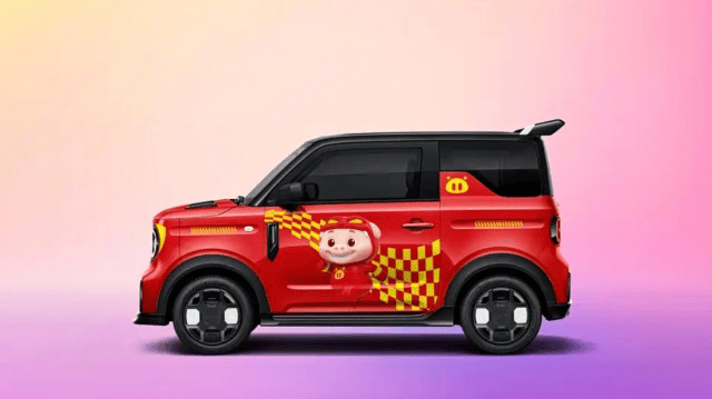 車身側(cè)面,吉利熊貓卡丁豬豬俠限定版采用了雙門4座布局,并配備了低風(fēng)阻造型輪圈。車身側(cè)面貼有豬豬俠動(dòng)漫角色的貼紙,進(jìn)一步提升了車輛的辨識(shí)度和趣味性。