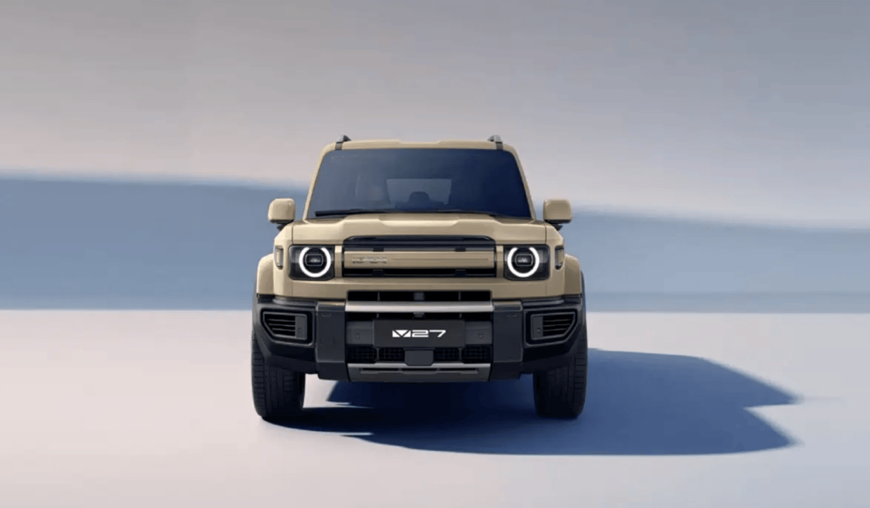 iCAR V23算是小火一把,所以我們看到,新車整體的外觀基本延續其設計手法,相對硬朗且復古,兩側是圓形燈組,中網裝飾條上有iCAR車標,下方則為非常粗壯有力的黑色前保險杠,該有的越野視覺效果還是到位的。