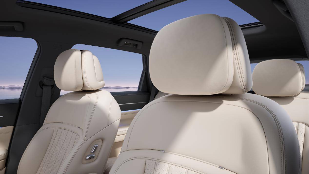 針對多人出行時空間不足、布局僵化等痛點,山海L7 PLUS創新性地提供了“電動7座”布局。全車七個座椅均支持電動調節,可實現32種座椅組合模式,一鍵即可將座椅放平形成近3米長的純平大床,完美滿足旅途中的休憩需求。
