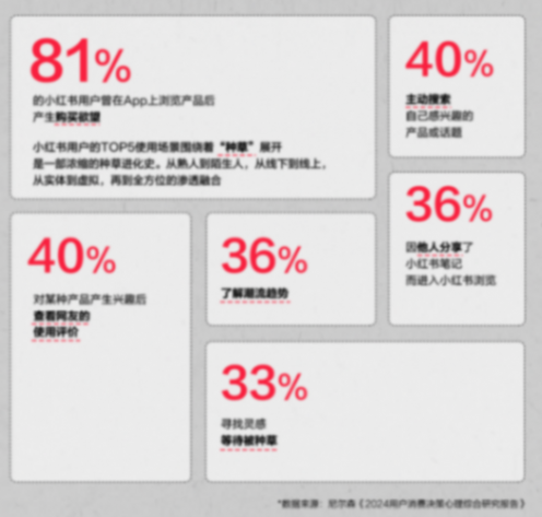 在用戶需求層面,小紅書用戶具備強烈的主動探索與消費參考意識,為汽車這類高決策成本產品提供了天然營銷優勢。據尼爾森2024用戶消費決策心理綜合研究報告顯示:40%的小紅書用戶會主動搜索自己感興趣的產品或話題,33%的用戶會尋找靈感等待被種草,81%的用戶曾在小紅書APP上瀏覽產品后產生購買欲望。