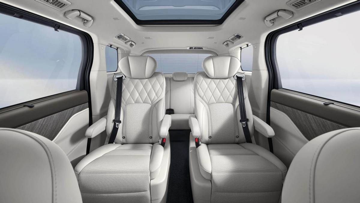 再來就是高山7的軟裝配置水平,中控是兩塊15.6英寸的2.5K雙聯屏,12.3英寸儀表屏和26英寸SR-HUD抬頭顯示,后排娛樂屏尺寸為17.3英寸,12.5L的車載冰箱也有配備。座椅配置前排二排都有通風加熱,僅有駕駛位有按摩,零重力座椅為選裝,而三排座椅也跟高山8一樣不帶通風加熱,且進一步把三排的電調功能簡配,也是成本考慮,但對家庭用戶來說體驗不會削減太多,畢竟冰箱彩電和帶腿托的獨立二排也都齊了。